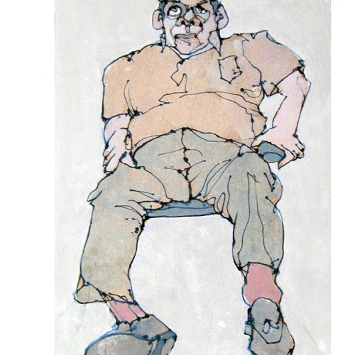 pen and gouache on paper towel