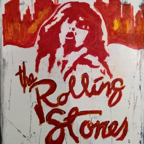 Tribute to vintage black market concert memorabilia. 24 x 18 acrylic on canvas.