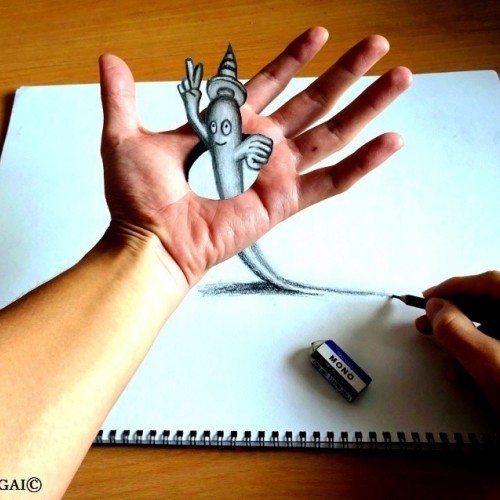 3D Drawing - Monster popping out of paper