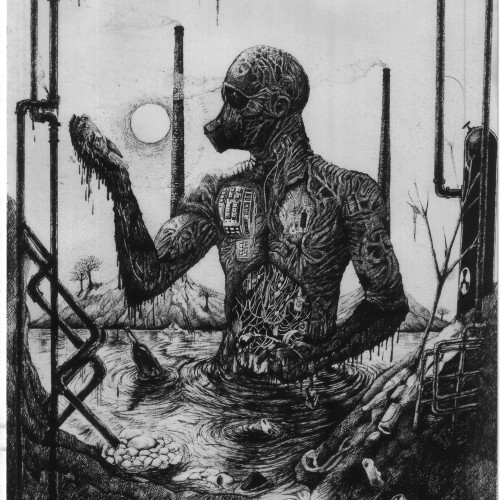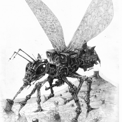 Pen and ink over couché, trying to have a woodcut(xilography) effect. Commissioned work.