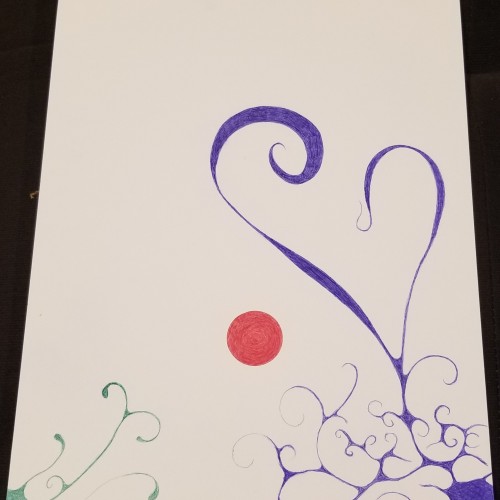 Artwork on "the other side" - playing with the bleed-through from the watercolor and intuitiviely allowing the shapes to arise. Created using watercolor, coffee, ink, graphic pens and unipen