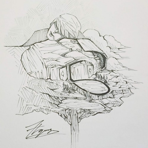 Ink on paper. The topic of the day was "spell"