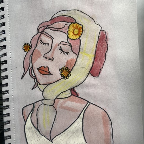 Drawing From the series "on the way of imagination" made with a fineliner, pencils and using a digital image of my doll. dimensions are double x 14/9 cm