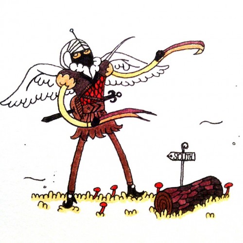 Pen and ink drawing of a little mouse cartoon character inside a tea cup on Canson's acid free illustration board.