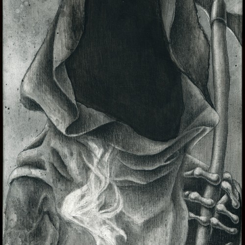 A horse with a gasmask was the photo that provoked this. I was imagining other animals so outfitted, and a fish was the craziest. Brown ink, colour pencil and whiteout.