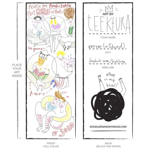 At Doodlers Anonymous we love books. We love the texture, ink, and creases of the printed word — the tactile deliciousness of thumbing, highlighting and devouring pages. We love books that weigh heavy in our hands. This showcase challenge is a tribute to traditional paper books and the act of reading. The two winners of this challenge (yes, there will be two!) will have their artwork fashioned into DA bookmarks. We challenge you to doodle the front-side of a bookmark, and we'll use the back to promote and credit you.