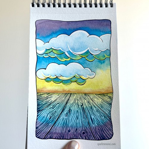 I painted the foxtail agave plants that I see everywhere on my walks, and the clouds of air that they create
