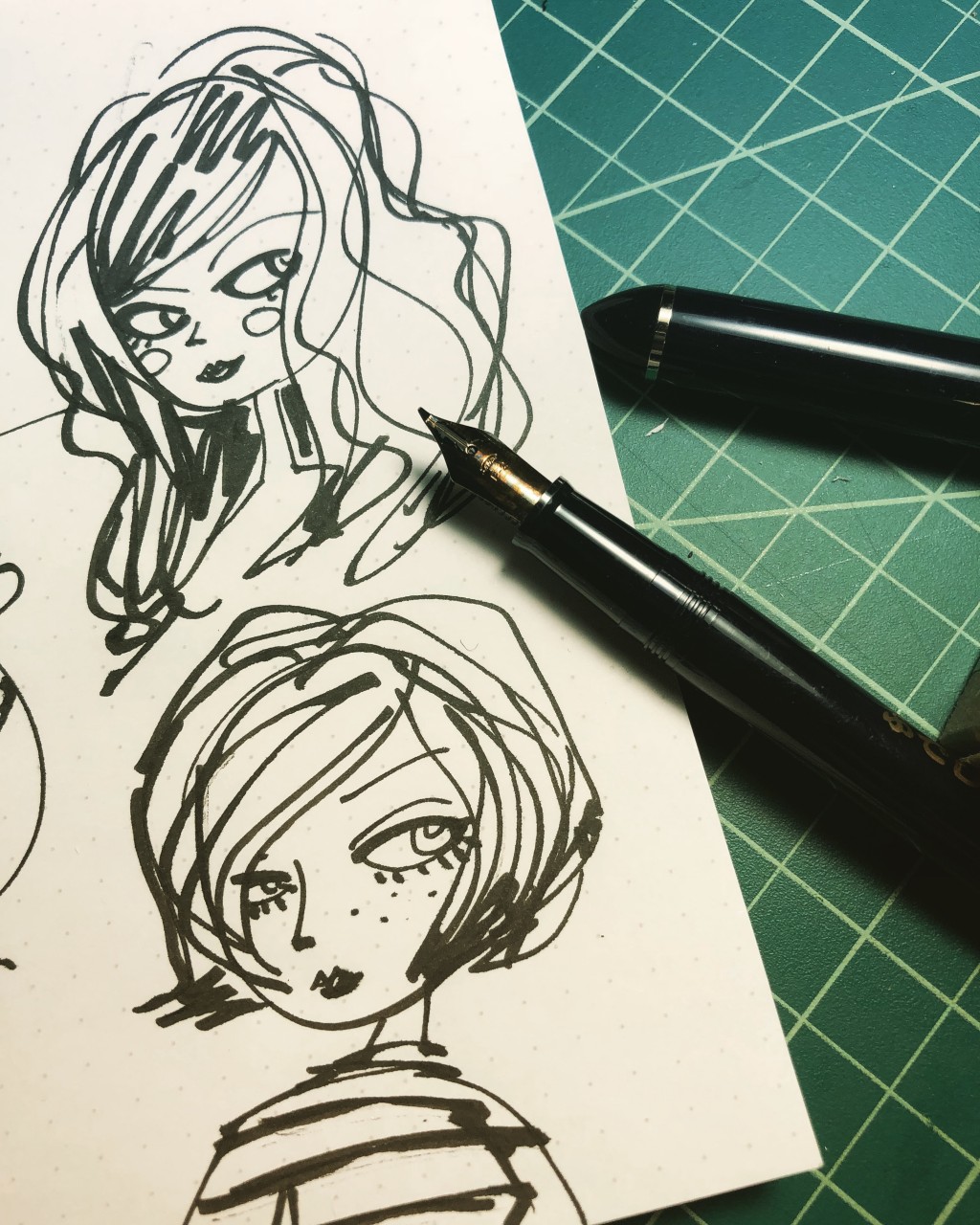 doodle, fountain pen, girls, pen and ink, sailor fude pen
