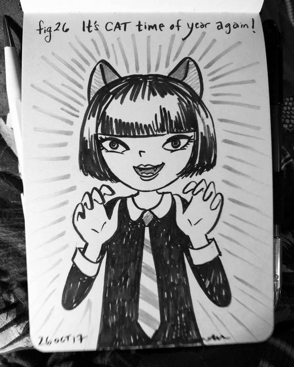 cat, catgirl, doodle, ink, inktober, sketchbook