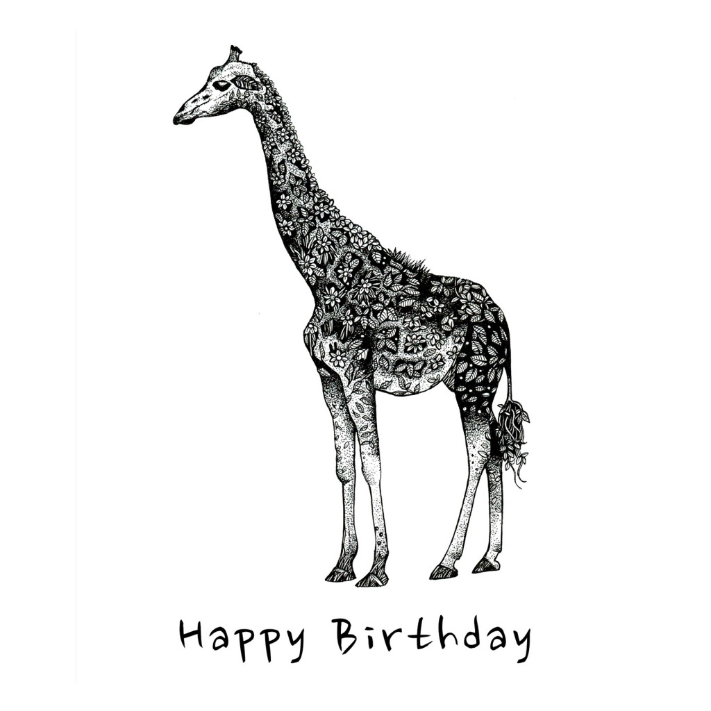 My Illustrated giraffe used flora and fauna to create the patterns on the giraffe. Drawn with pen and ink, he was great fun to produce!