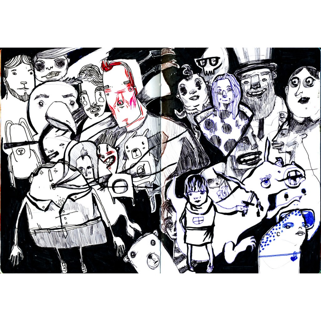 Here's an ink illustration from my sketchbook. The only thing more terrifying than dying of the plague might be encountering a plague doctor. The type at the bottom says "A Black Sun Revolves Around You." It's been distorted and abstracted, but it's derived from letterforms.