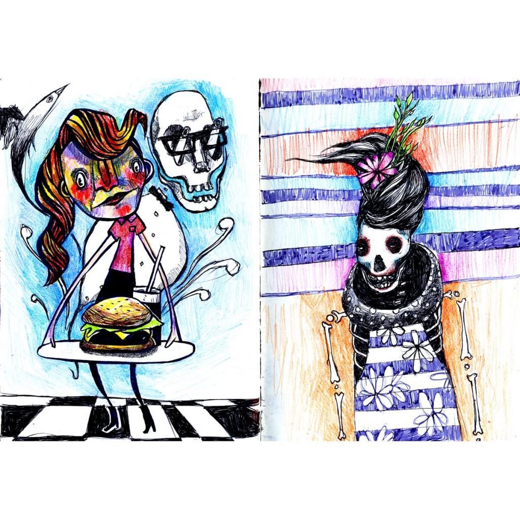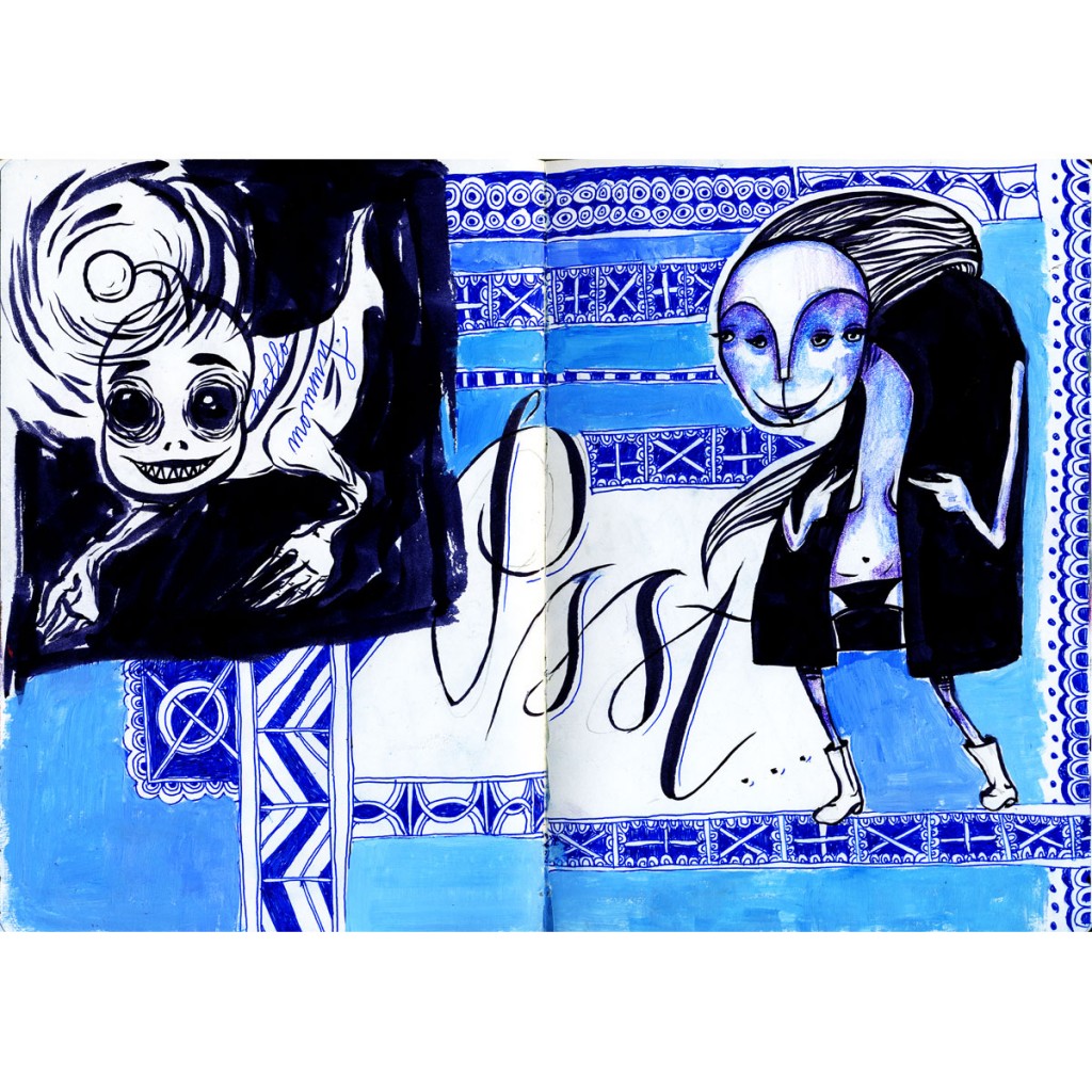 My friend wanted nautical creatures for the back of her business cards, so VOILA. These are ink doodles that were scanned and given some color/grunge in Photoshop.
