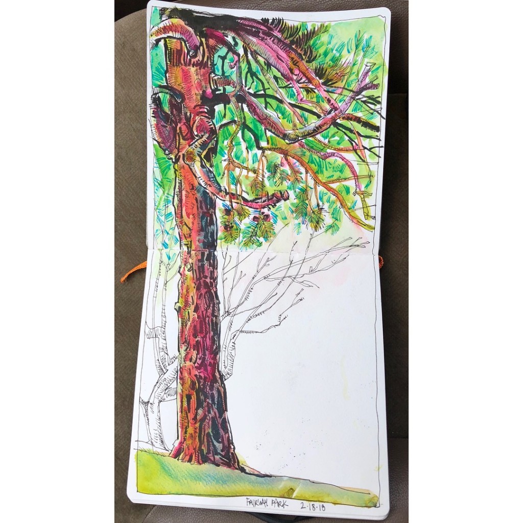Experimenting today with an oil transfer drawing technique. The red and purple lines are oil drawn/transferred to hot press 140 pound watercolor paper with watercolor applied. The oil resists the watercolor.