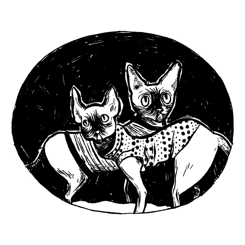 The Ford Taurus was the most boring car I could think of. This selection of doodles are all just ink on paper, applied with a brush. The black circle behind the cats was Sharpie. I had a design back there, decided I super-hated-it, and then screwed the whole thing up. Ah well. The cats are still okay.