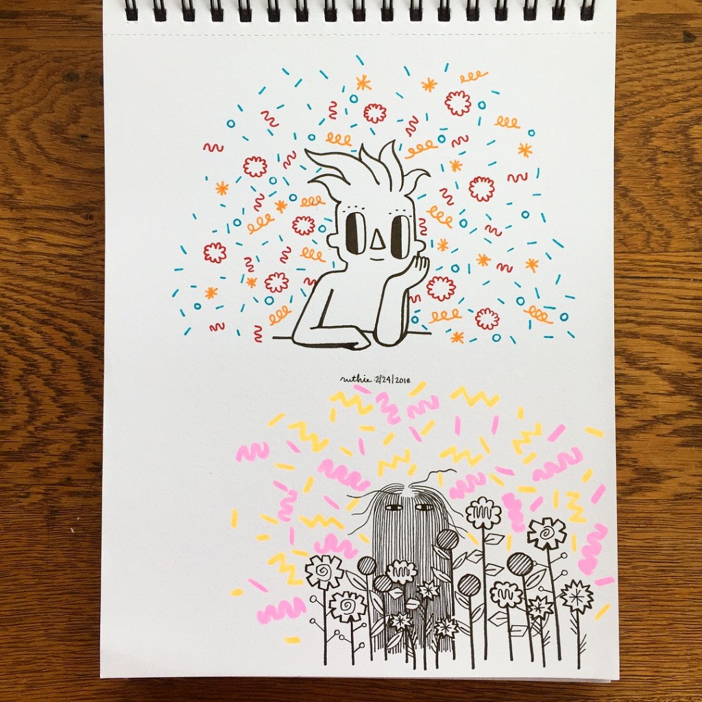 @ruthietherobot It is interesting that you use a perforated notebook/sketchbook. Do you find that you tear out the page and display the art or keep it all within the sketchbook?
