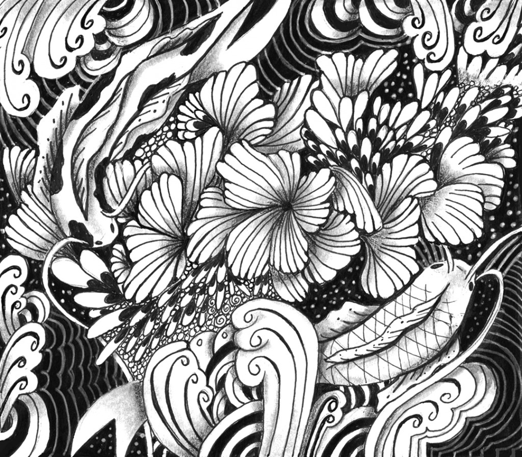 animals, art, artist, black and white, coloring book adult, doodling, drawing, illustration, marker art, pen and ink, quirky doodles, zenart