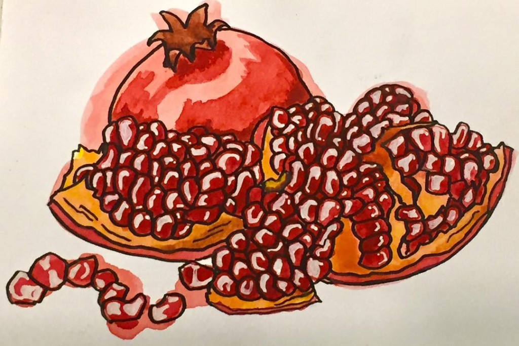 Sketching a pomegranate.