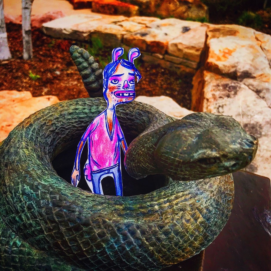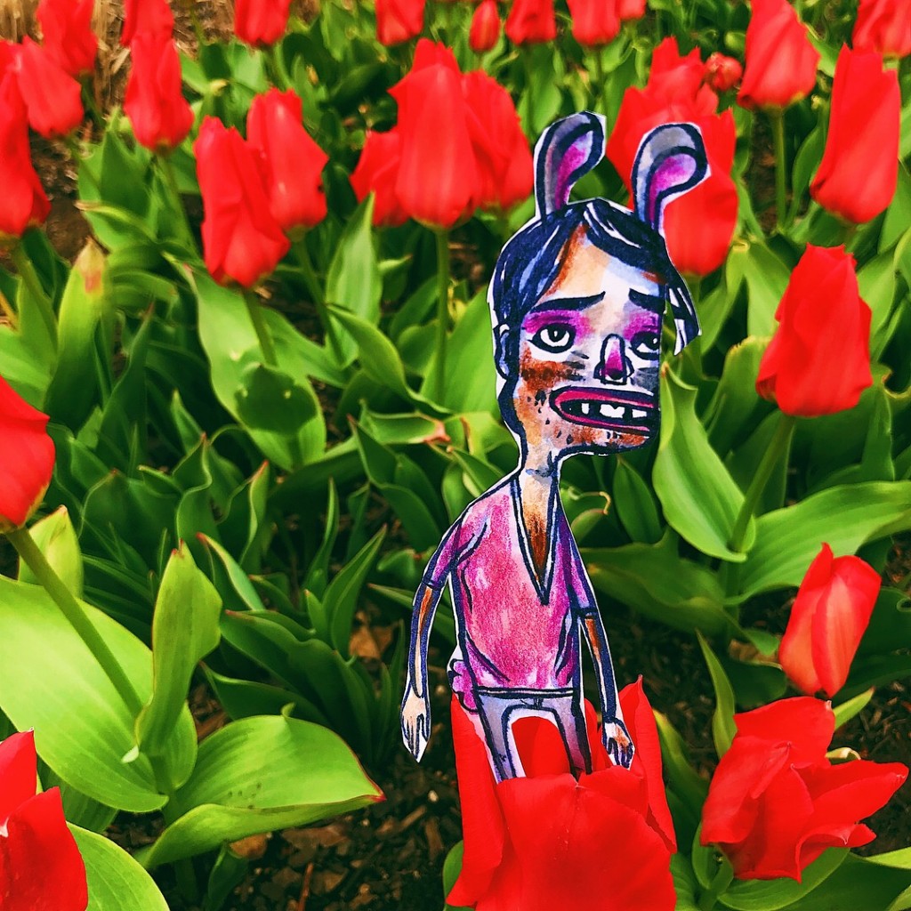 I took my drawings out into the wild for some glamour shots. I got busted crawling through a flower garden doing so, but the woman was fine with it. I gave her this bunny.