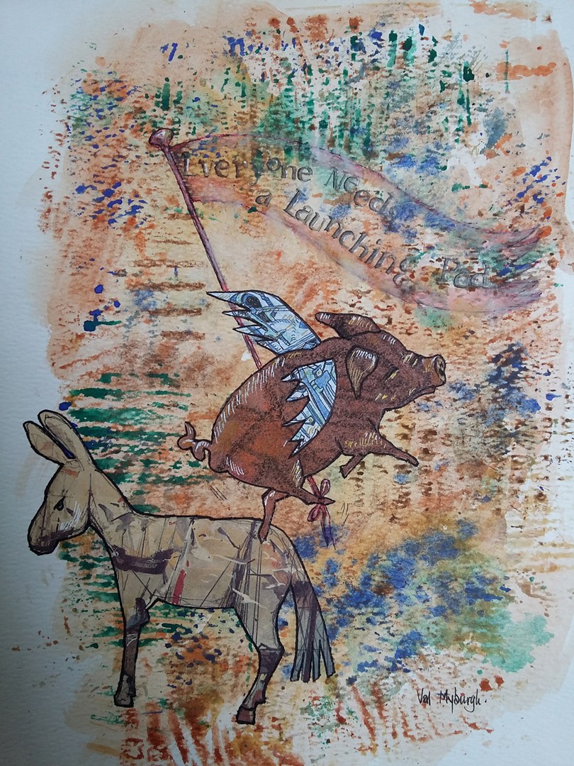 collage, donkey, fantasyart, mixed media, pig, sketchbook