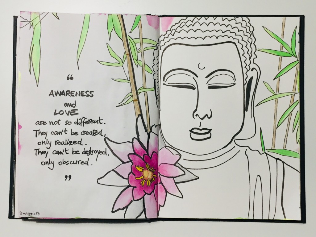 Buddha with lotus flower and an inspirational quote from Headspace