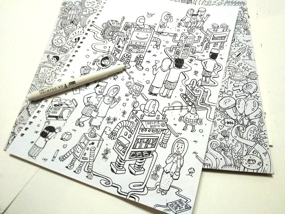 camera, comic, doodle, eidalfitr, illustration, mixed media, paper, pen and ink, robolism, robot