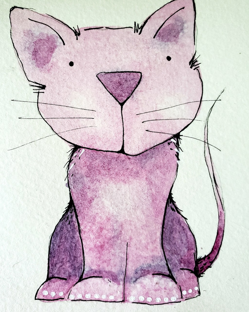 cat, mixed media, pink, uni posca, watercolor