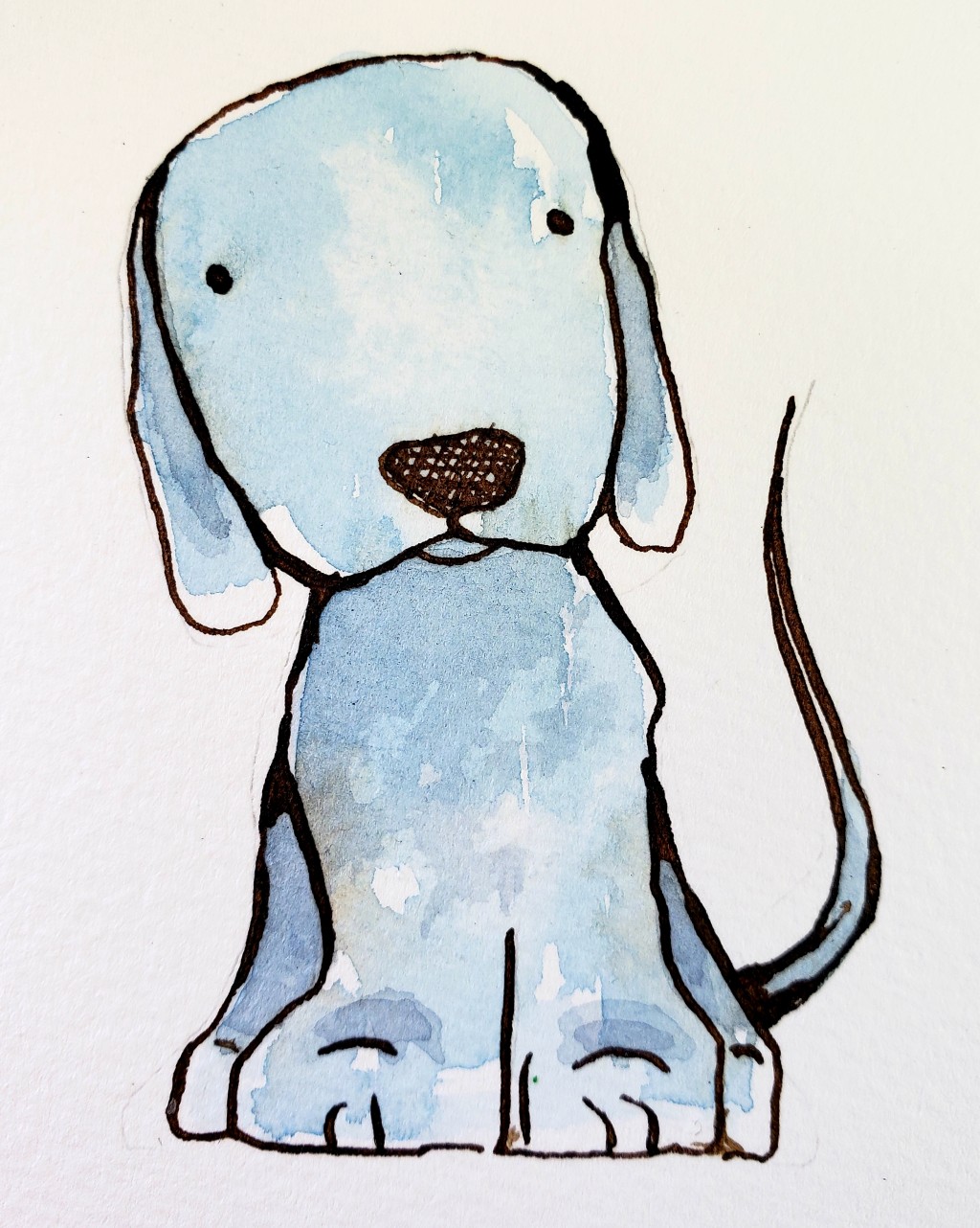Practicing with a calligraphy dip pen. Watercolor and burnt umber ink.
