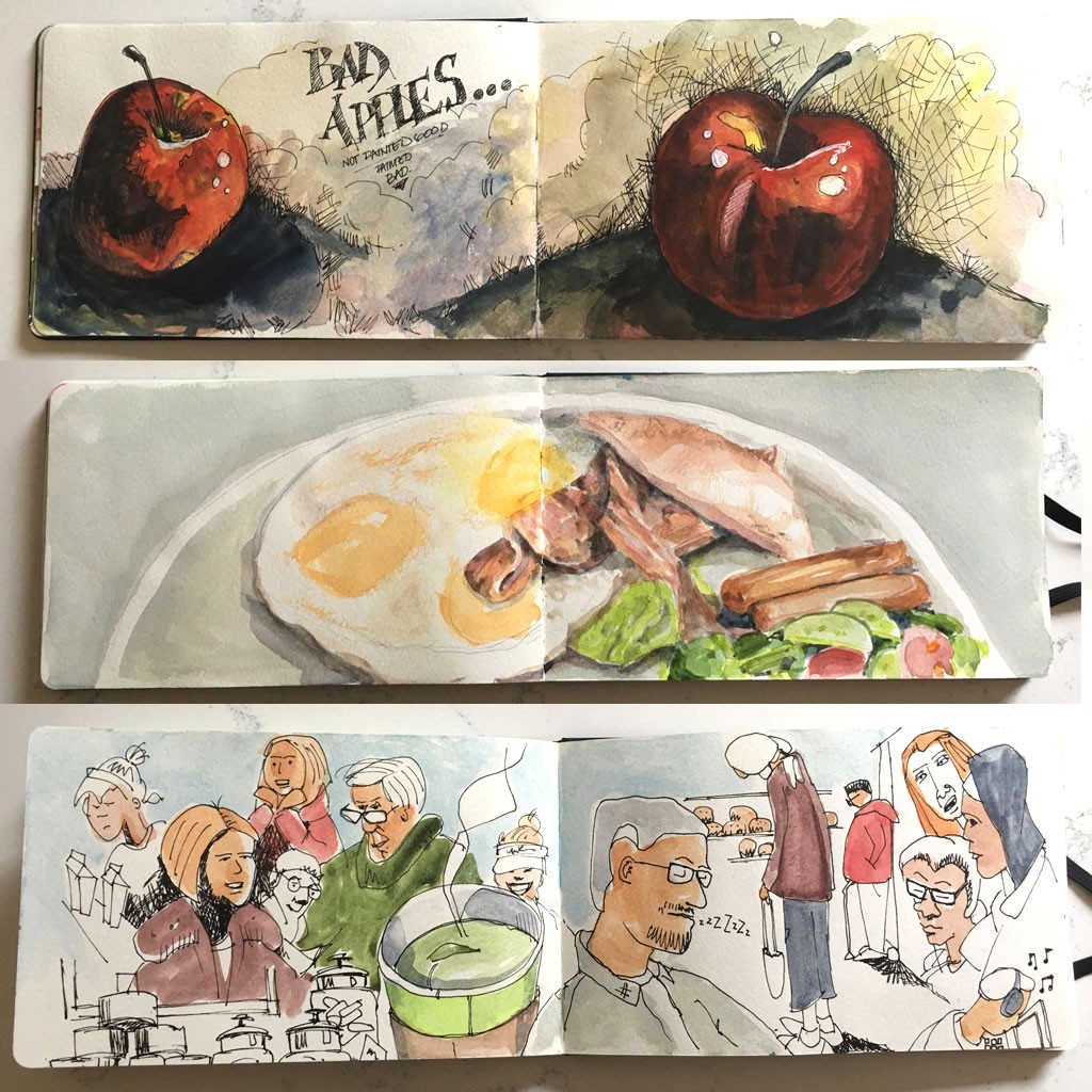 A few Moleskin watercolour spreads with some pen and ink mixed in.