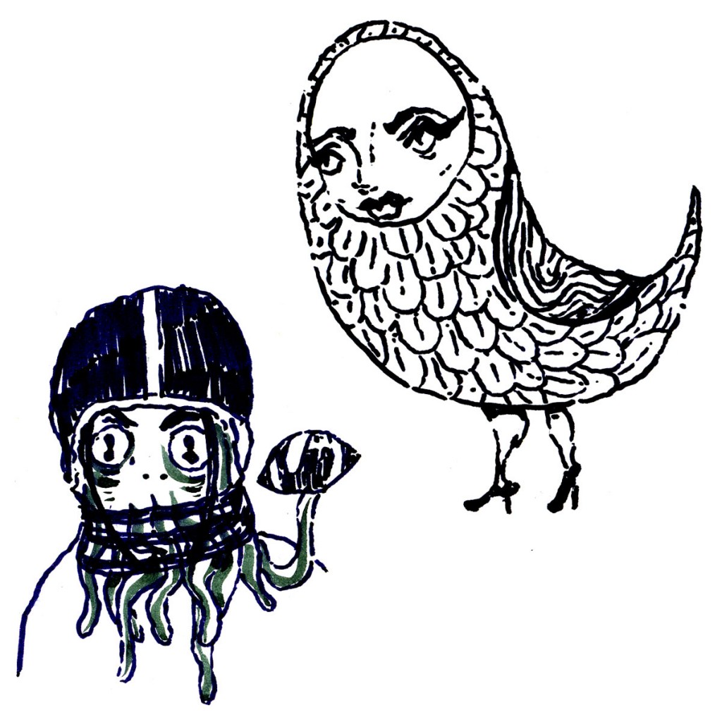 I took an hour or two and drew some owls while watching the 7th Harry Potter movie. The black (it's actually dark purple) ink is in a Platinum Preppy refillable marker (I SWEAR BY THESE -- you just need the ONE and can keep putting ink in it) (https://www.gouletpens.com/collections/other-writing-instruments/products/platinum-preppy-refillable-marker-black?variant=11884751487019) and the green is in an extra-fine Lamy Al-Star (https://www.gouletpens.com/products/lamy-al-star-fountain-pen-bluegreen?variant=11884855885867).