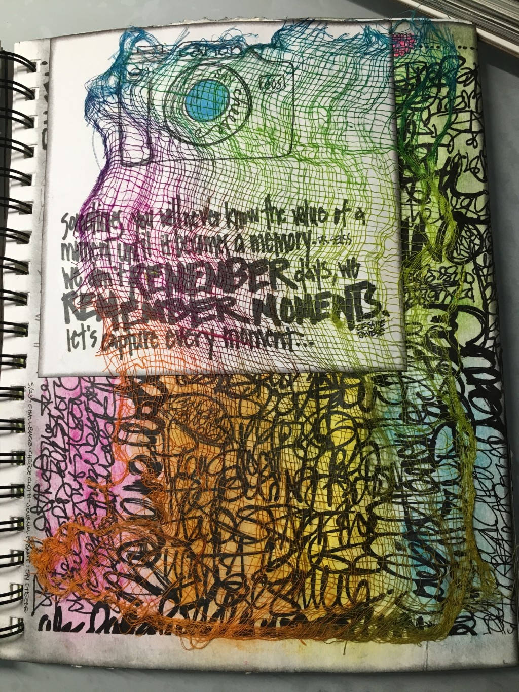 marker, spray inks, gauze collage