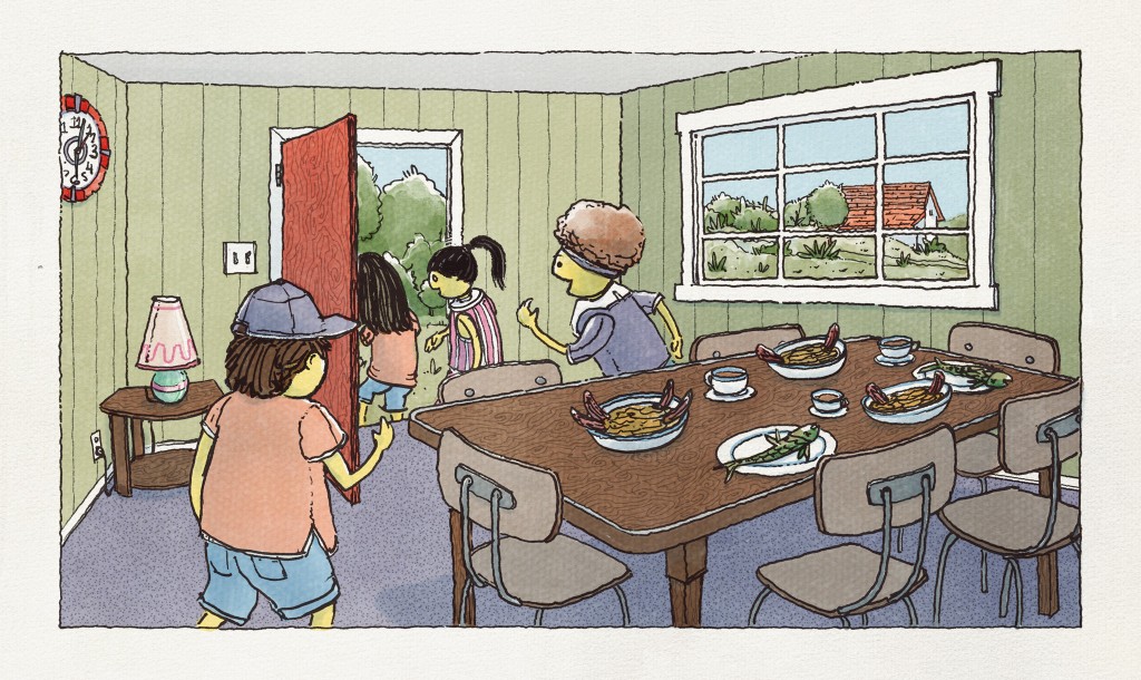 So Mum goes for the phone and these guys slip out the door to see what Graham is doing up in the tree... I can't believe they'd just leave their food behind like that. I mean... look at it. Mmm.