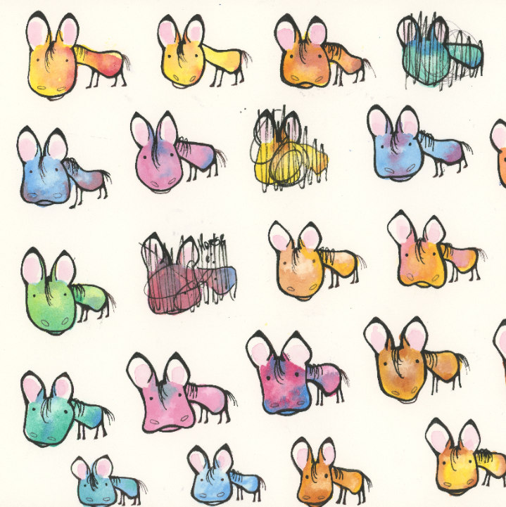 Little watercolor horses, they were fun to draw and paint and each seems to have it's own personality. Some look a little too much like a donkey though. lol