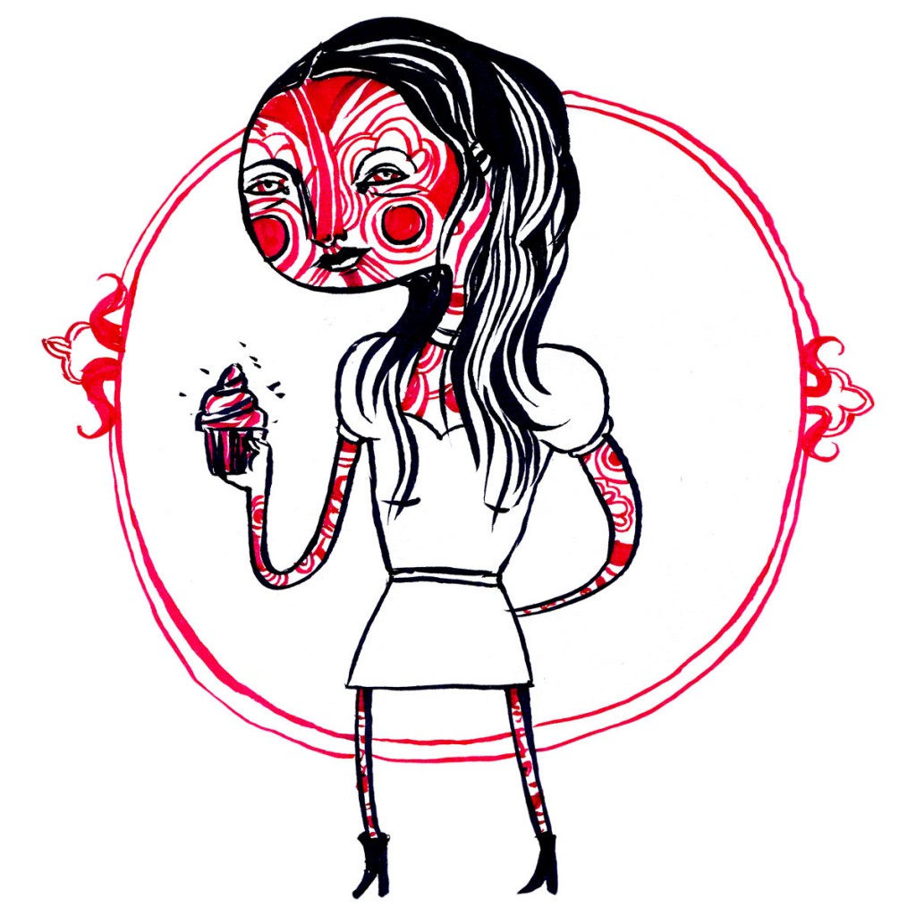 I drew a girl holding a cupcake and felt bored by her, so I added some sweet-ass tats. This was fountain pen ink run through water brushes. For more Digital Random Joy™, be sure to check out Instagram Super_Starling, which is a fairly fun place, if I do say so myself.