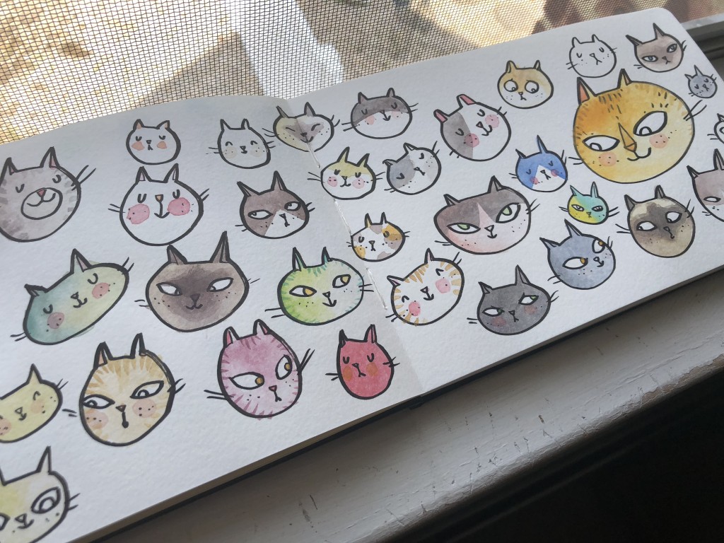 brushpen, cats, doodle, illustration, inktense, sk