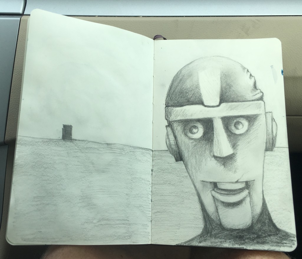 Graphite on moleskin drawn in a car travelling far away.