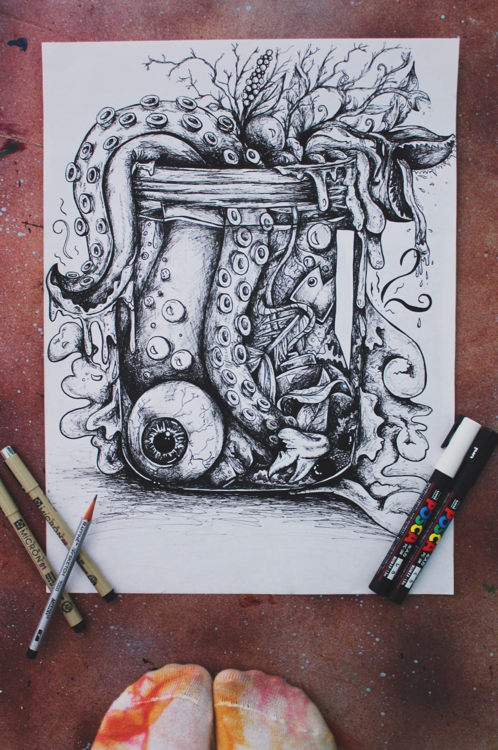 I love the description. For years I've had in my mind some sort of sculpture or installation of a broken heart made up of pieces of broken relationships, but it's never come together. Also the texturing in the ink is lovely.