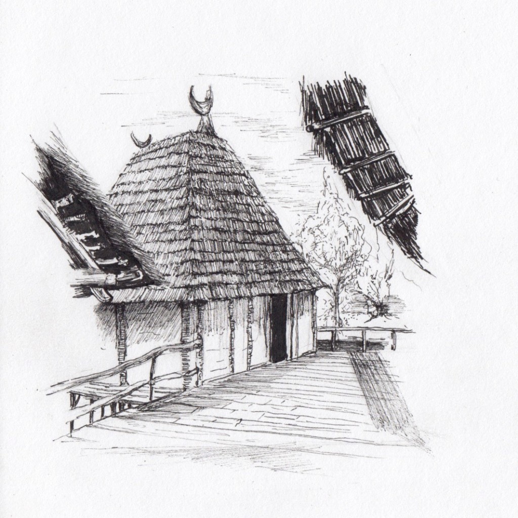 Drawn on holiday in Germany, a recreated historical village, the houses stand in the water on wooden poles