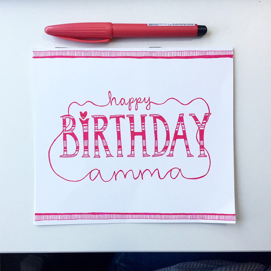 brithday, card, doodles, doodling, graphic design, handlettering, illustration, lettering, pen and ink, pink