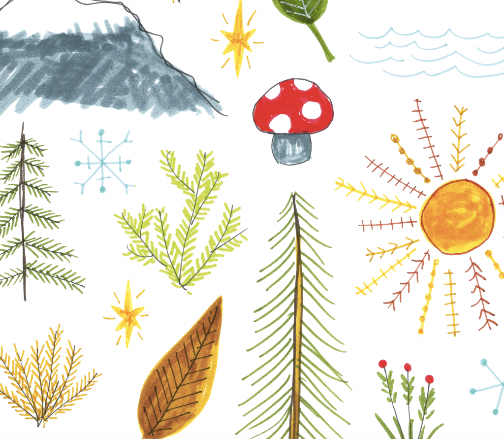 mushroom, pattern, sun, woods