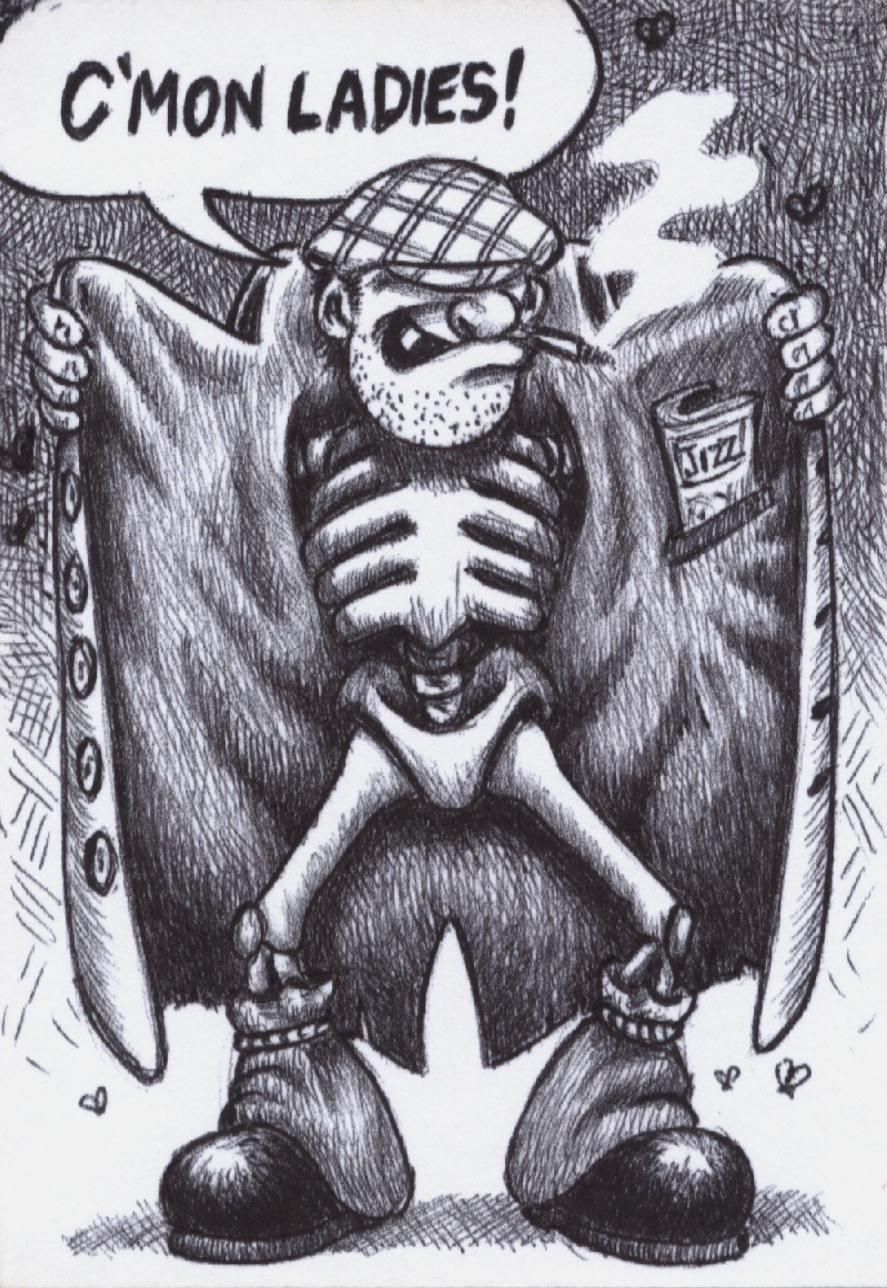 (2B pencil on 158mm x 137mm paper) "They're not flag-waving wannabes, or finger-pointing-blamemongers. They're true British Heroes! They were born with spines of steel, have spunk by the bucketload, and their upper-lips aren't just stiff, they're rock-solid! They're the type who'll kick those mad-dogs aside and proudly march, bare-arsed, into the midday sun!"