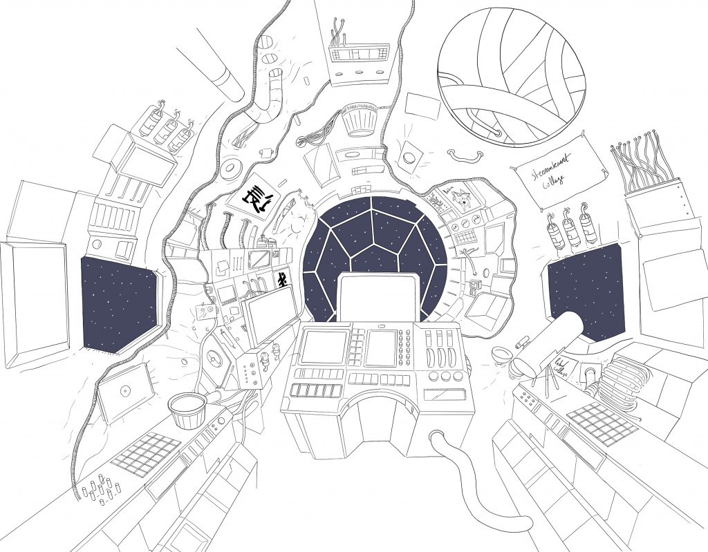 For a Dutch science museum I illustrated and later animated this interior of a fictional space ship.