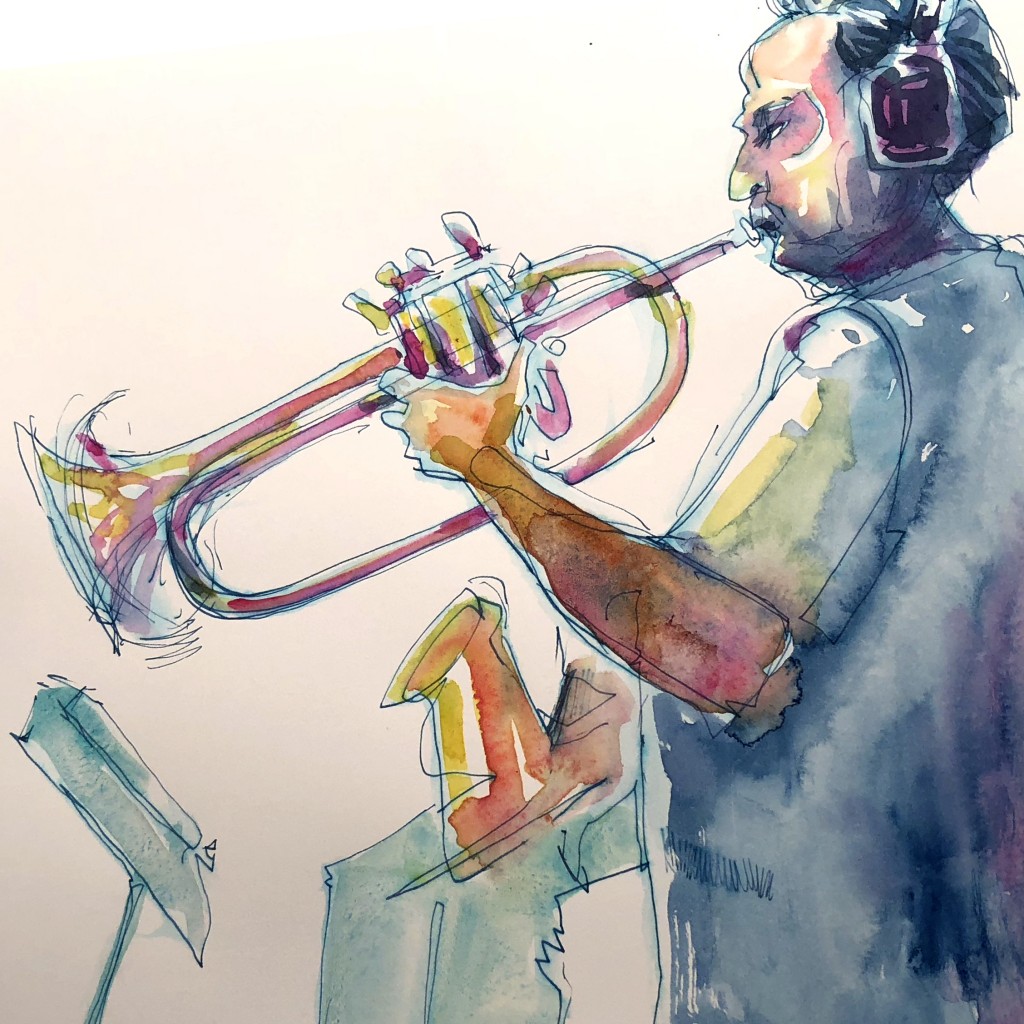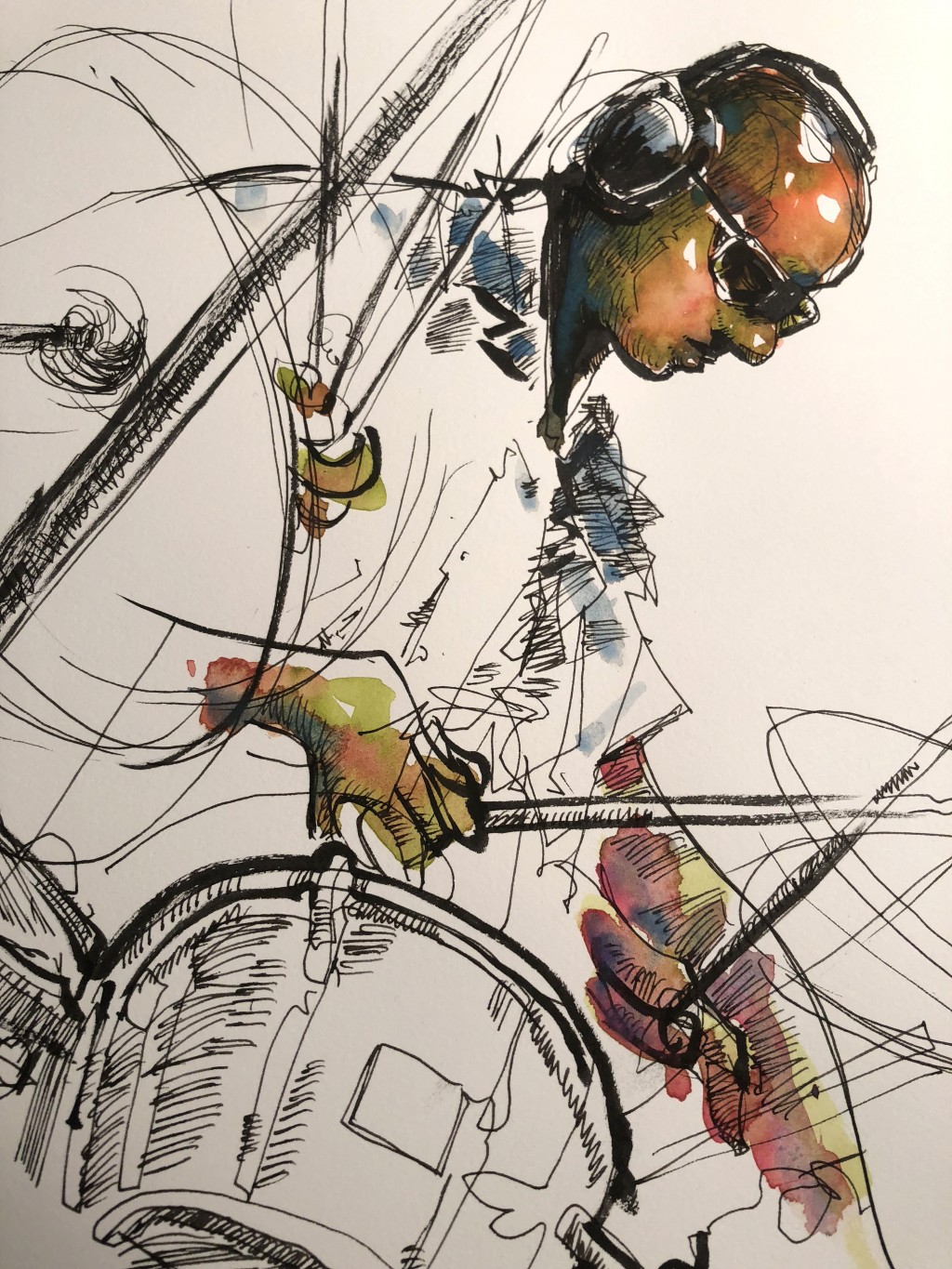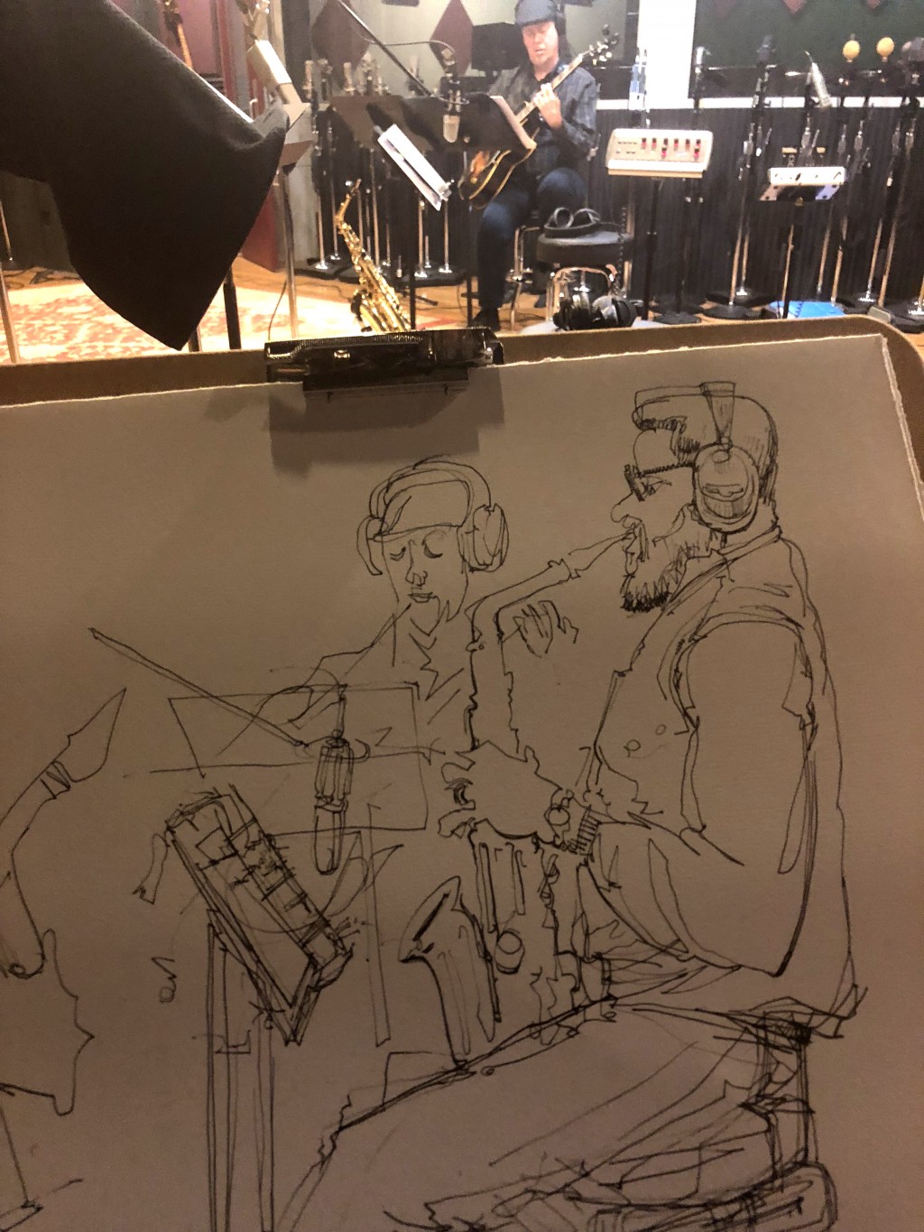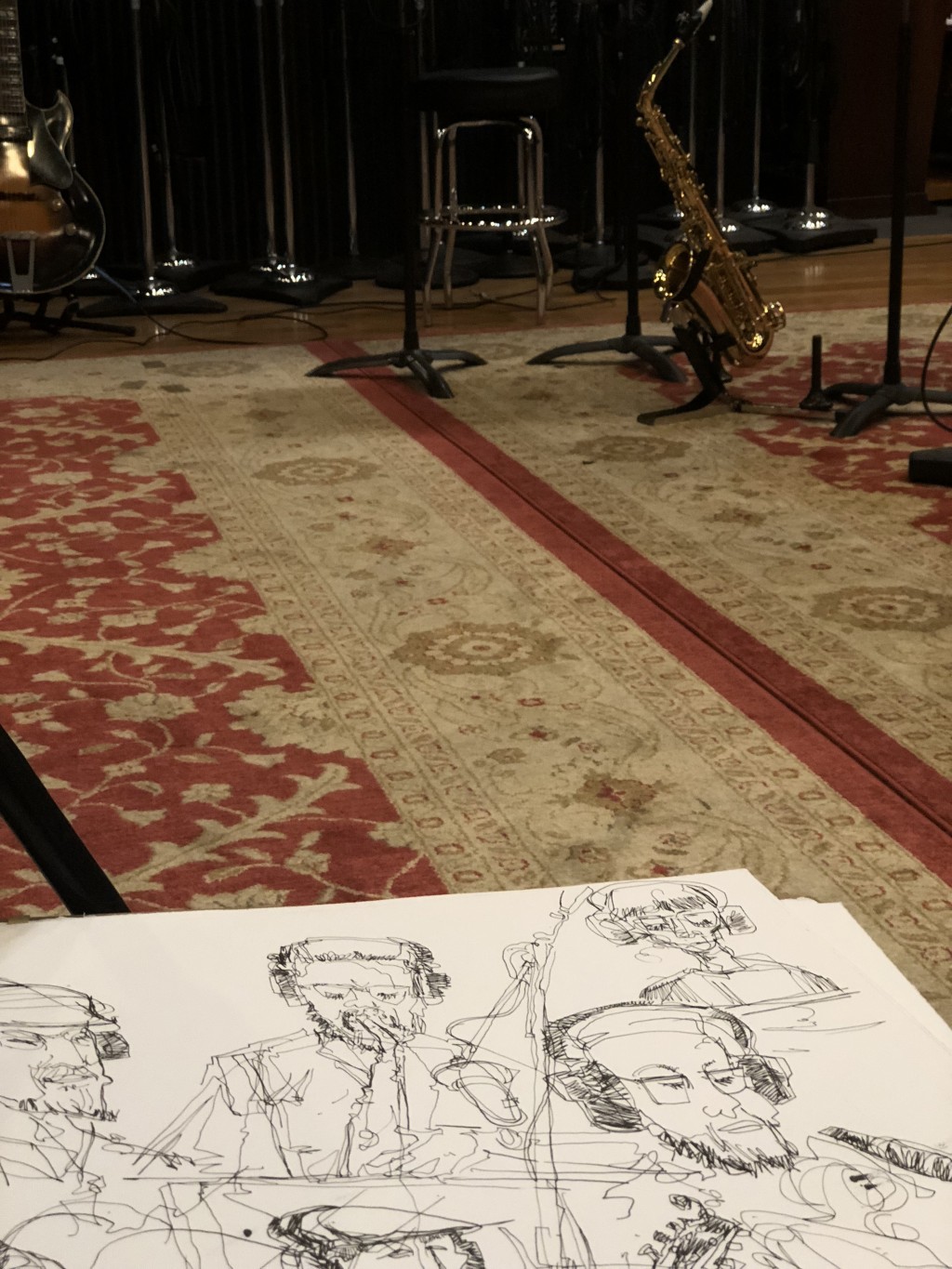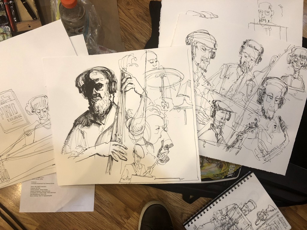 Wow! I was invited to spend the day in the recording studio drawing the creation of a jazz album. I will be going back to my studio to create the album cover art for the project. Included are few photos of my process drawings from the session. It was an amazing experience to spend time with these incredible musicians. I will share the final results at a later date.