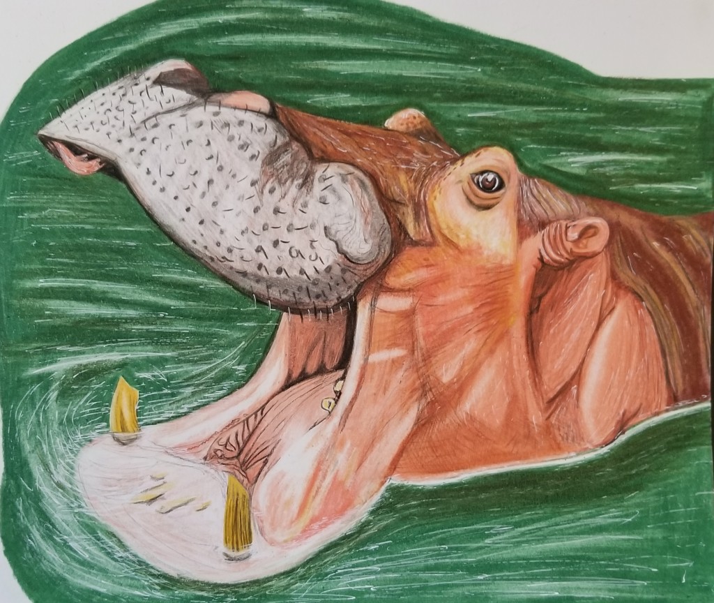 Just a little doodle done for my fiancee, her favorite animal is a hippo. Created with colored pencils.