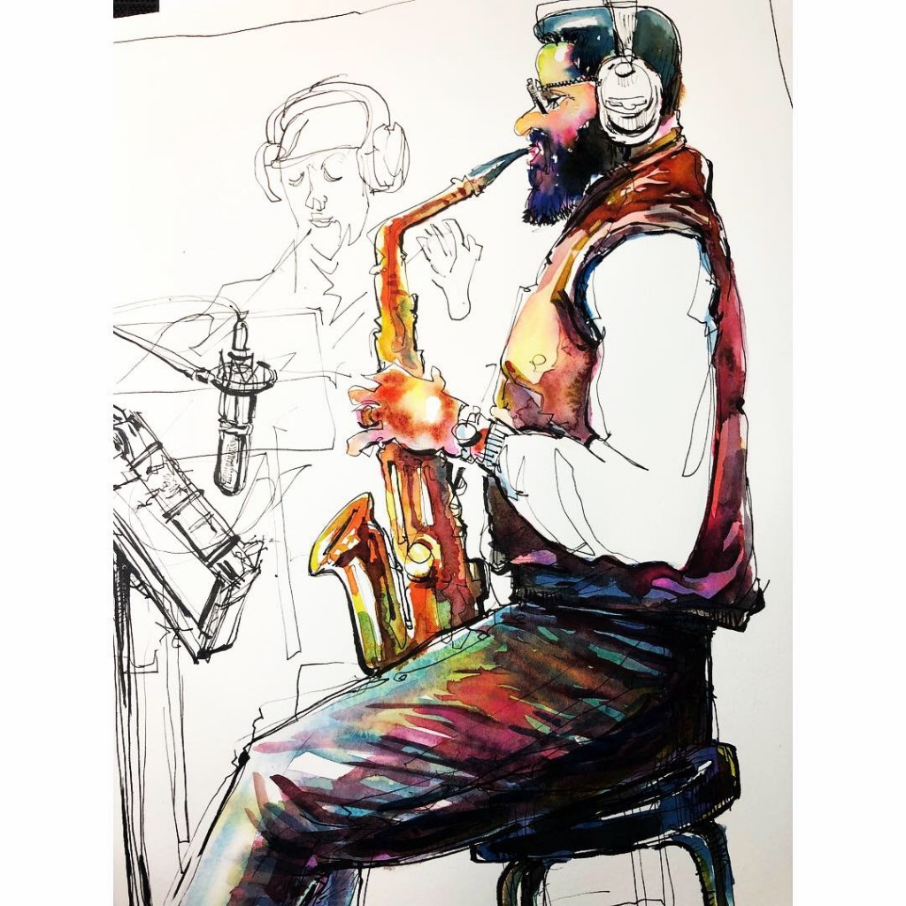 The drawing behind the saxophone is really caught my attention I had to take another look