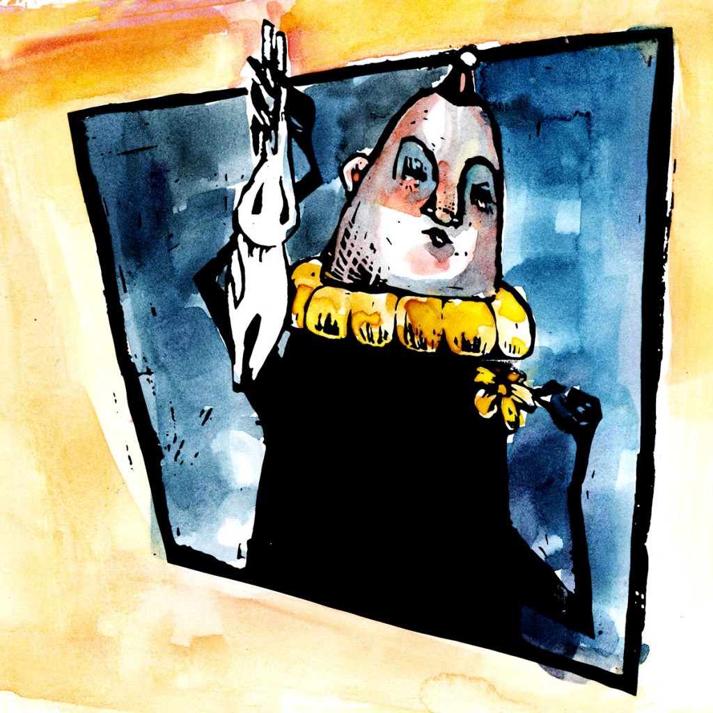 I'm trying a new subtractive technique to get black tones in my drawing, then watercoloring over top. It's sort of a printmaking approach. Sort of.