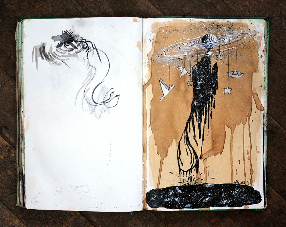 So simple and so cosmic! :) my cosmic food delights series made during the quarantine..ink and coffe and of course bread with butter :)