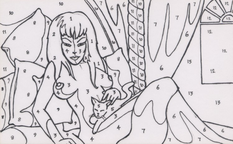 (2B pencil on a 139mm x 87mm postcard. Actual image size is 85mm x 48mm) A juxtapop piece showing a single comic-book style frame with a completely unconnected phrase in the speech bubble.