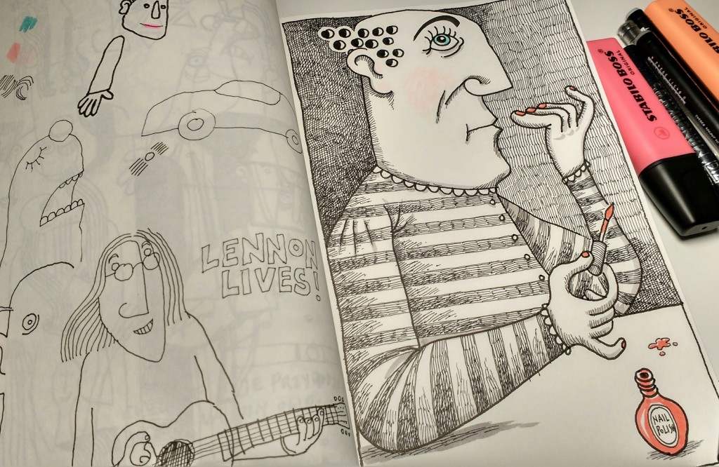 black and white, cartooning, doodles, sketchbook, whimsical illustration