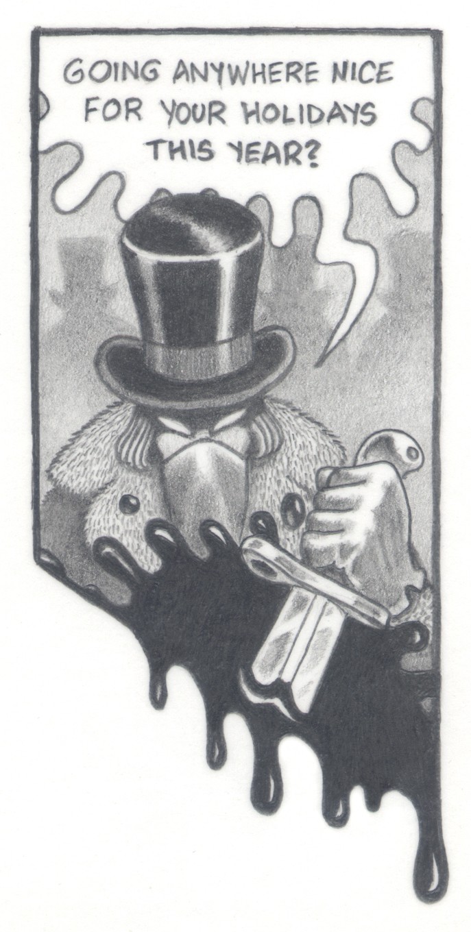 (2B pencil on a 125mm x 75mm notecard) Another juxtaposed artwork that shows an everyday phrase used against a completely out of context comic book frame.