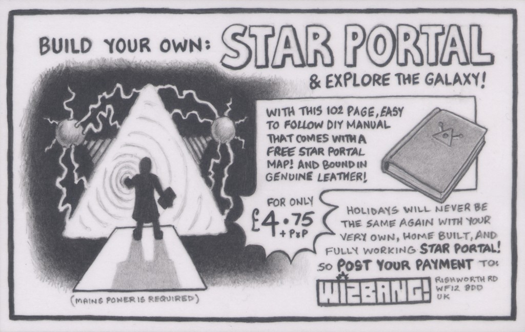 (2B pencil on a 87mm x 139mm postcard) Sometimes, how-to books were sold in old comic book adverts. These ranged from ventriloquism to hypnosis and promised amazing things when, in reality, they were just little booklets. With this artwork, I chose to depict one that would show you how to build something truly wonderful.